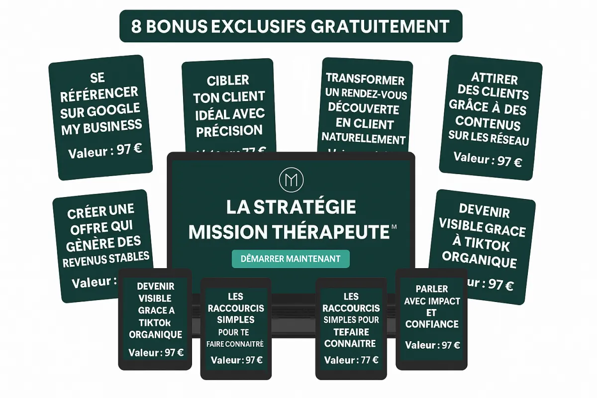 Ce bonus vous aide à bâtir une entreprise solide, claire et rentable — en posant les bases que 90 % des débutants oublient (et qui les empêchent de vivre de leur métier).