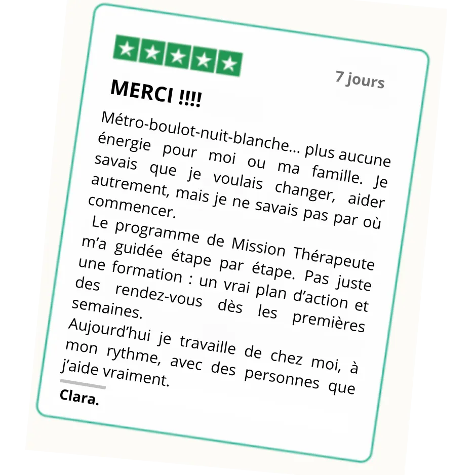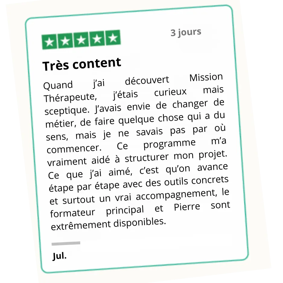 Et si c'est trop nouveau : Mission Thérapeute vous accompagne pas à pas pour vous sentir légitime et construire votre activité.
