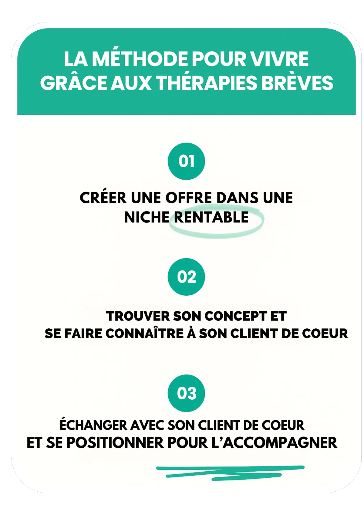 Sans méthode claire, les thérapeutes finissent par accepter des clients qui ne leur conviennent pas, perdent confiance, travaillent pour presque rien et finissent par se sentir illégitimes face aux attentes.